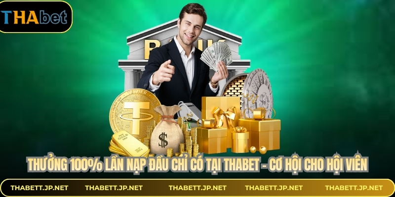 Nếu bạn là tân binh của THABET và thực hiện lần nạp tiền đầu tiên, đừng bỏ lỡ cơ hội nhận ưu đãi 100% giá trị số tiền nạp. Giới hạn thưởng tối đa cho ưu đãi này là 1.800.000 đồng, nghĩa là nạp 1.800.000 đồng sẽ nhận ngay số tiền thưởng tối đa 100%.